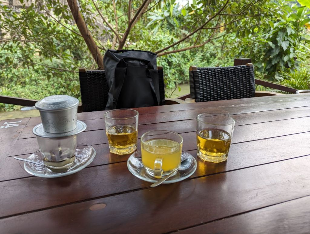 Wer einen Kaffee bestellt, bekommt vietnamesischen Kaffee. Ein sehr starkes Gebräu, welches mit Kondensmilch getrunken wird. Fabi ist kein Fan.