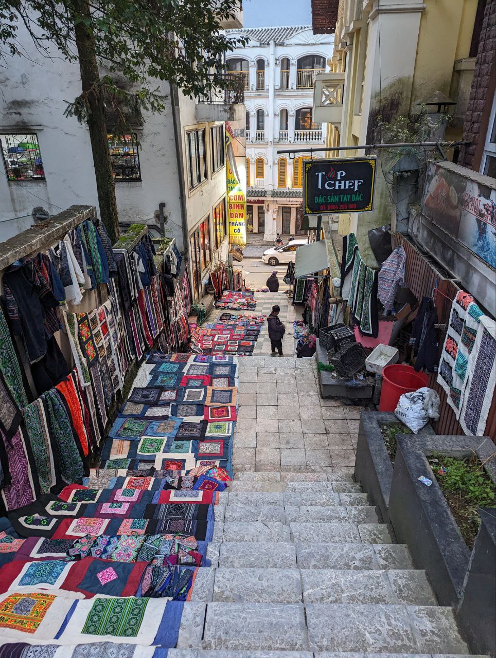 Mit dem Bus geht’s in das touristische Bergdorf Sa Pa. Die Seilbahn zum dortigen Highlight, dem höchsten Berg Indochinas, dem Fansipan (3.143 m) ist wegen Wartungsarbeiten für vier Wochen geschlossen. Das neblige Wetter lädt nicht gerade ein, den anspruchsvollen Aufstieg zu Fuß zu begehen. An wenigen Tagen genießen wir die schöne Aussicht auf die hohen Berge.