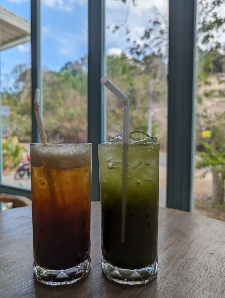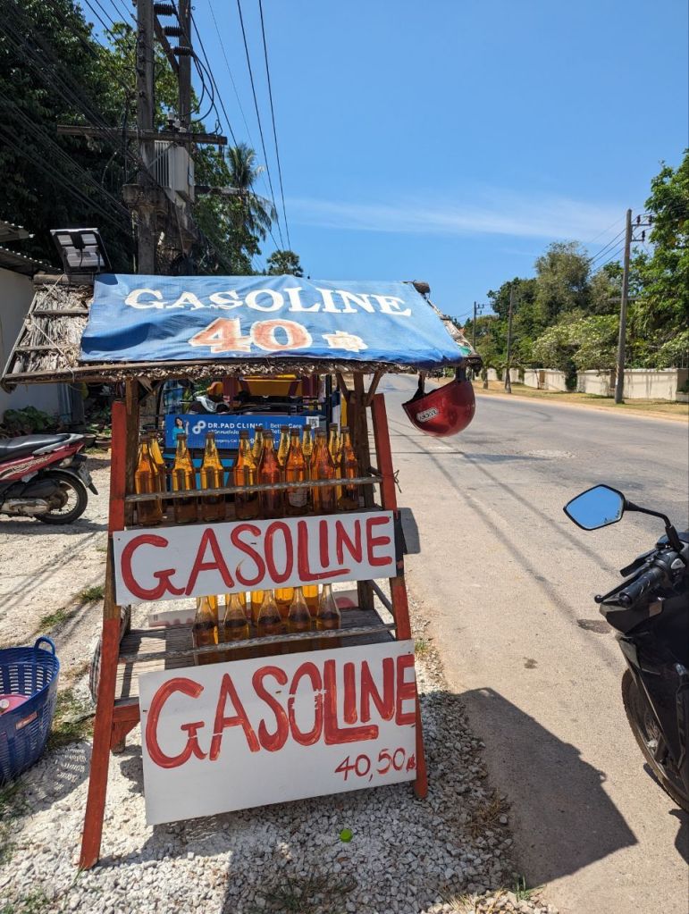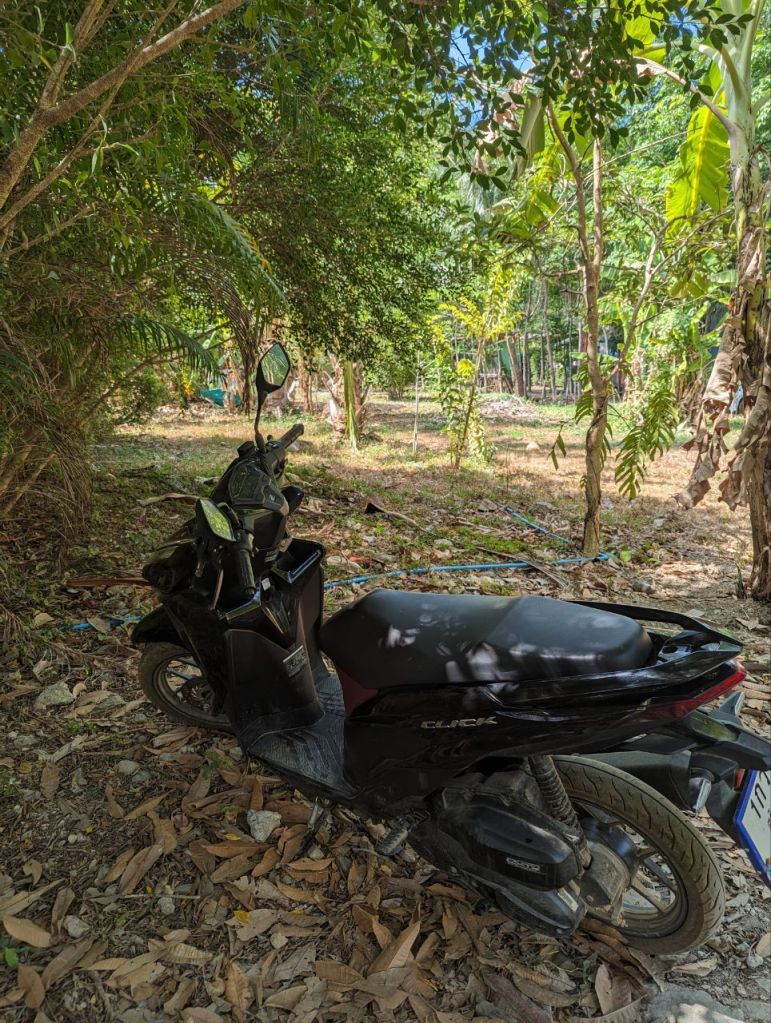 Um 9 Uhr kriegen wir eine hübsche Honda Click. Einfach so, kein Vertrag, kein Pfand. Wenn was kaputt geht, unser Problem. Spannend. Wie immer leerer Tank.