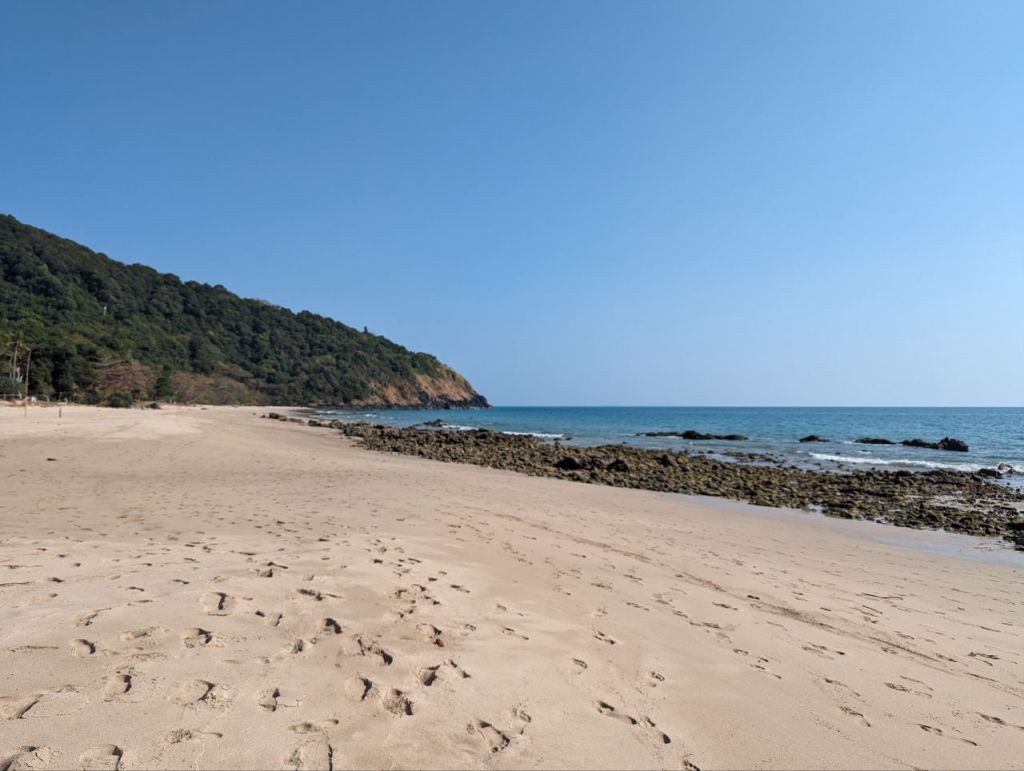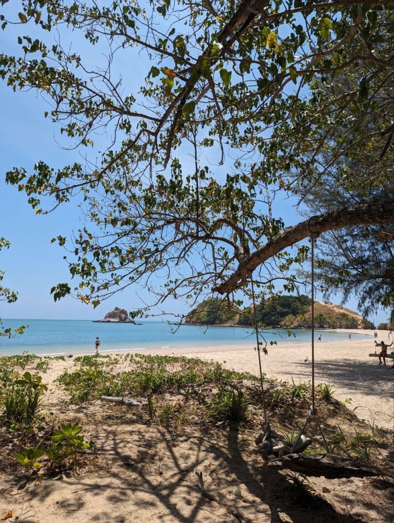 Gut verschwitzt geht’s dann zum Strand. Mehr als am Ufer planschen ist nicht, Quallenwarnung. Reicht uns aber.