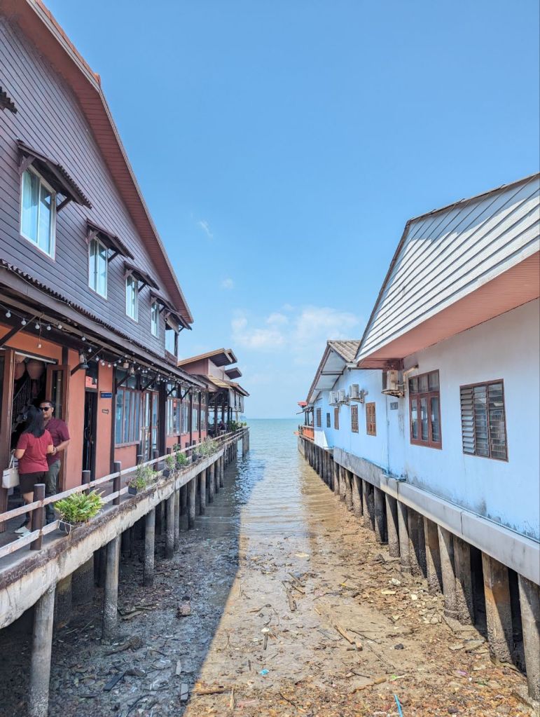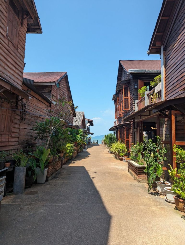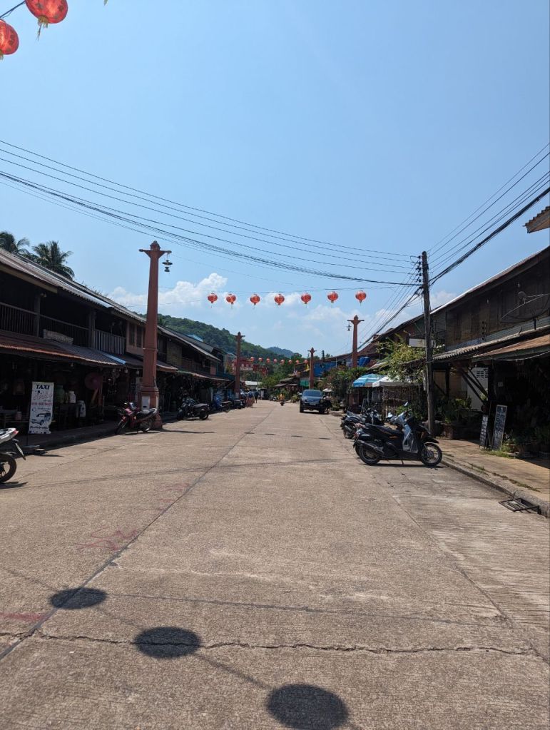 Dann besuchen wir Lanta Old Town auf der anderen Inselseite. Die Hauptstraße ist schön, immer wieder gibt es Blicke durch die Häuserfronten Richtung Meer.