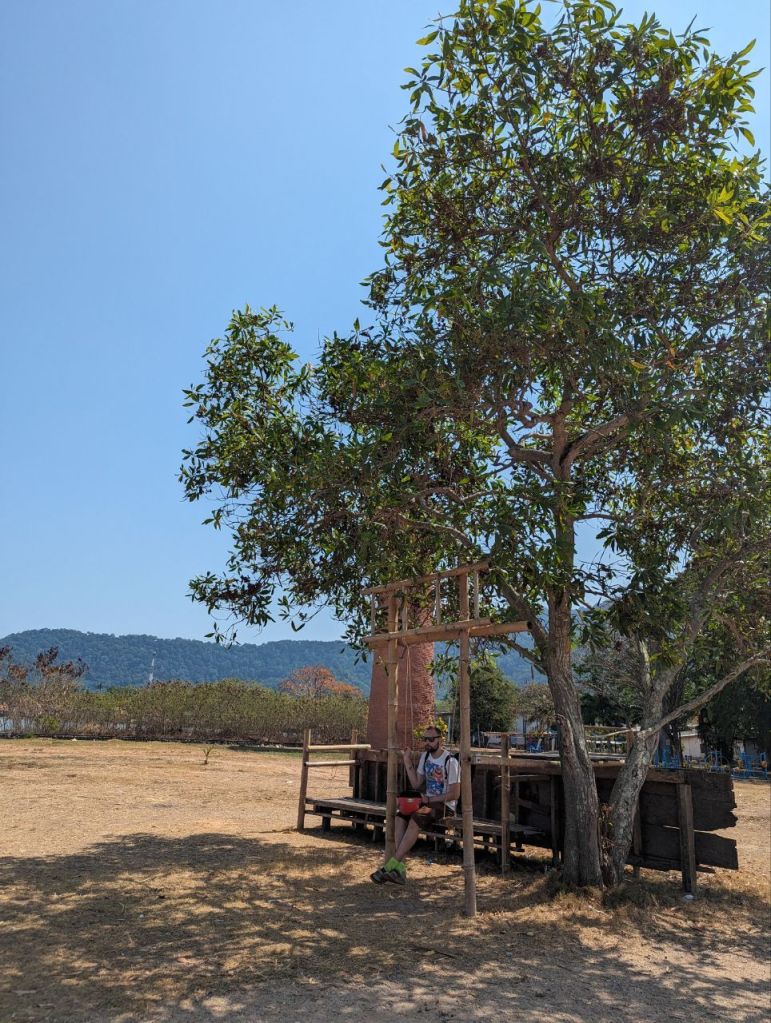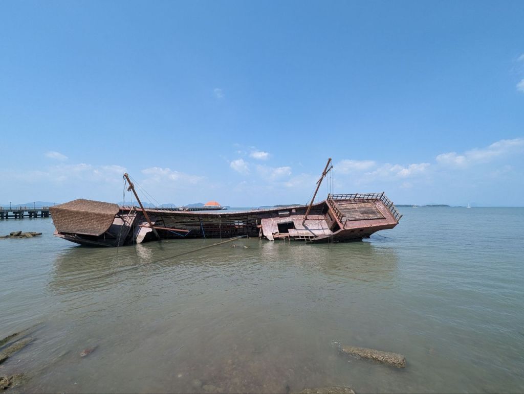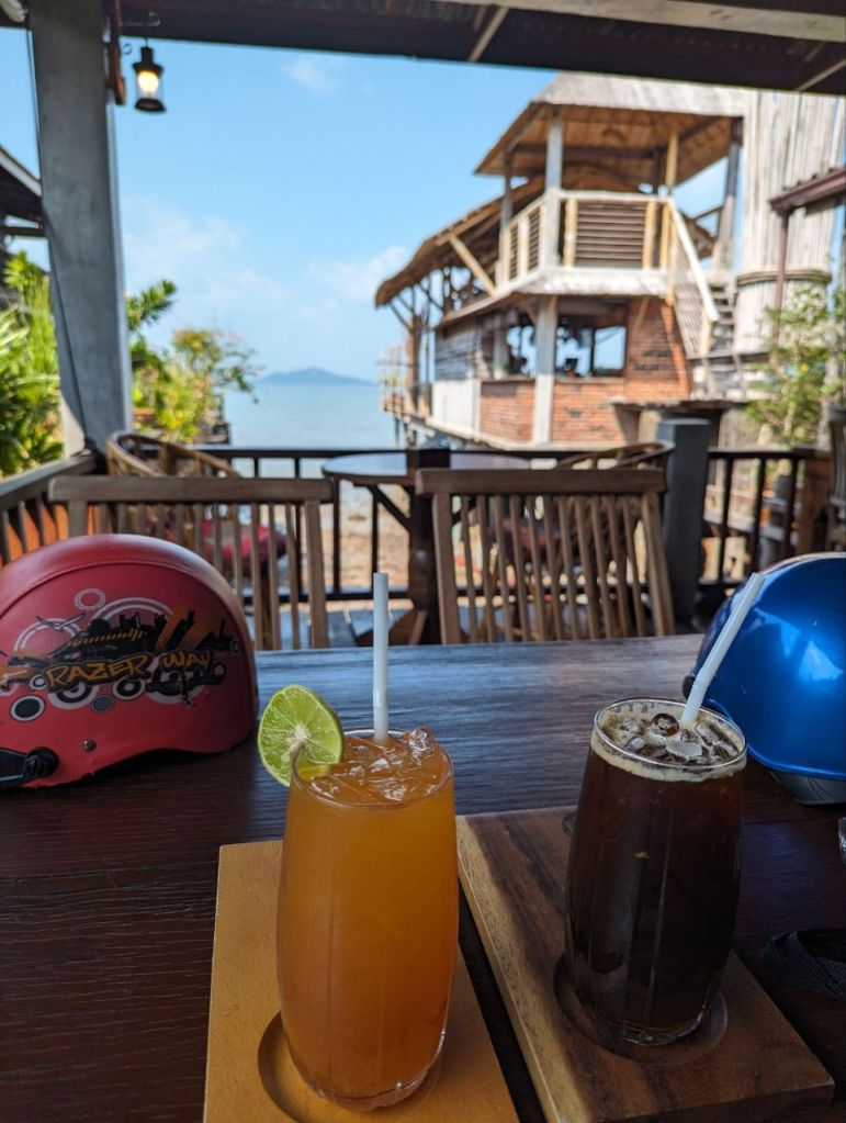 Wir besuchen das alte Wrack und gönnen uns ein kaltes Getränk in einem Café am Meer.
