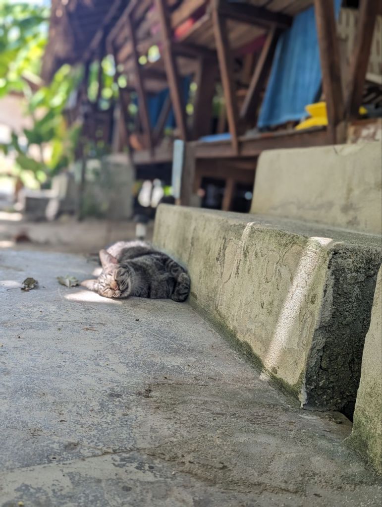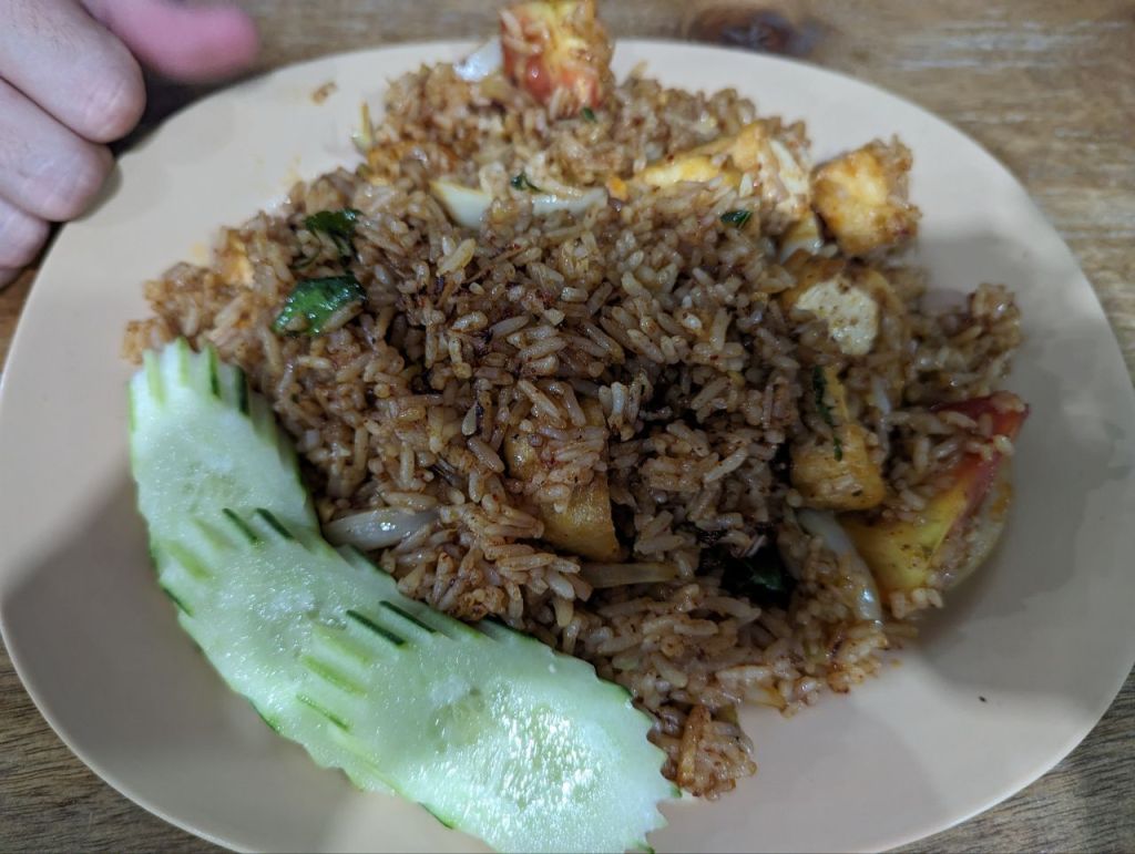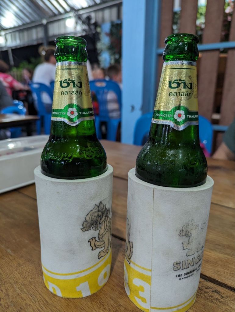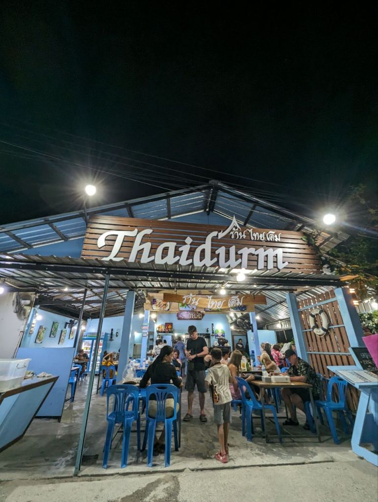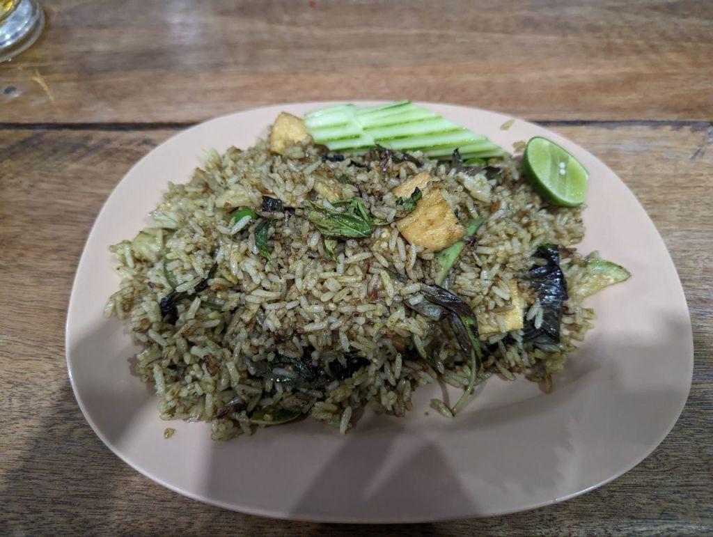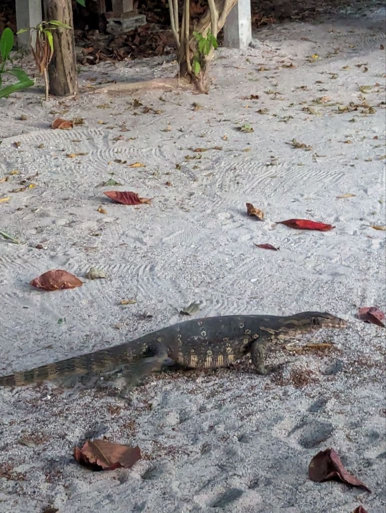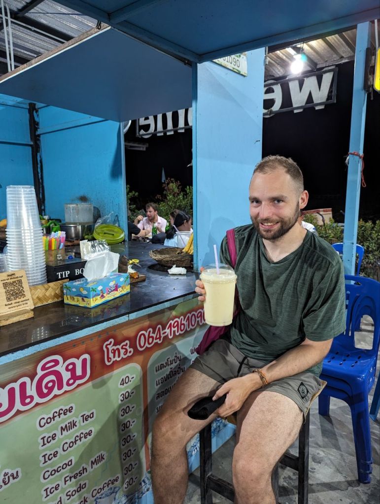 In der Dämmerung läuft eine Waran direkt an unserer Tür vorbei. Zum Abendessen gibt’s Thai Fried Rice (green Curry und spicy red). Als Nachtisch einen günstigen und guten Ananasshake für 50 Baht.
