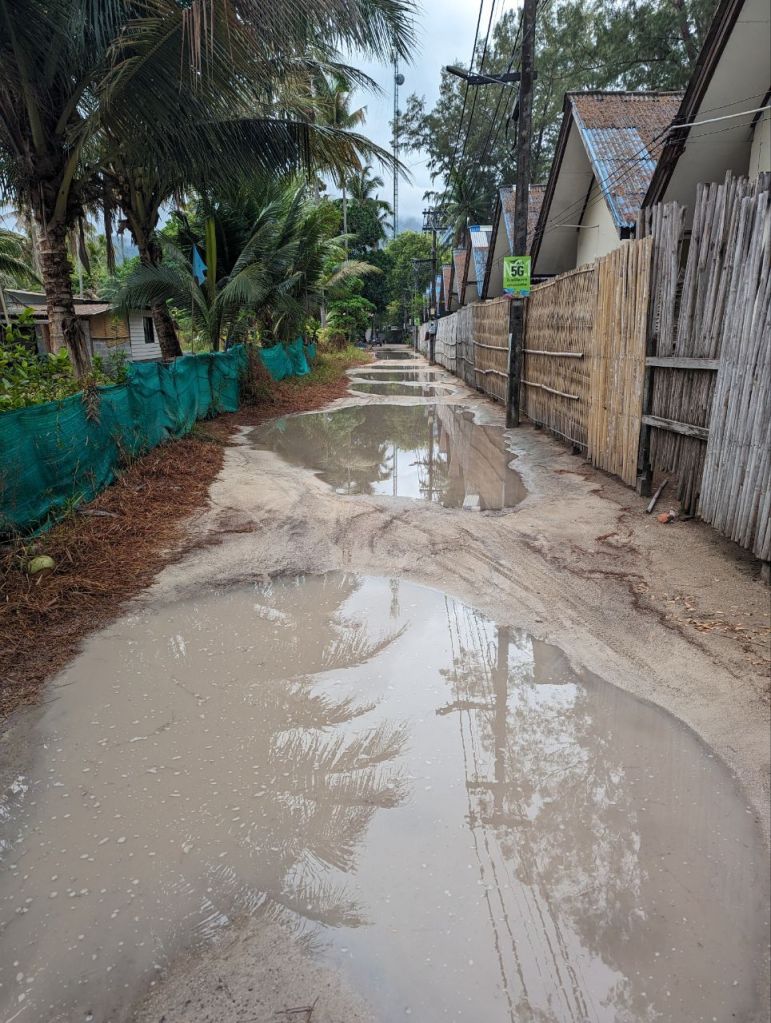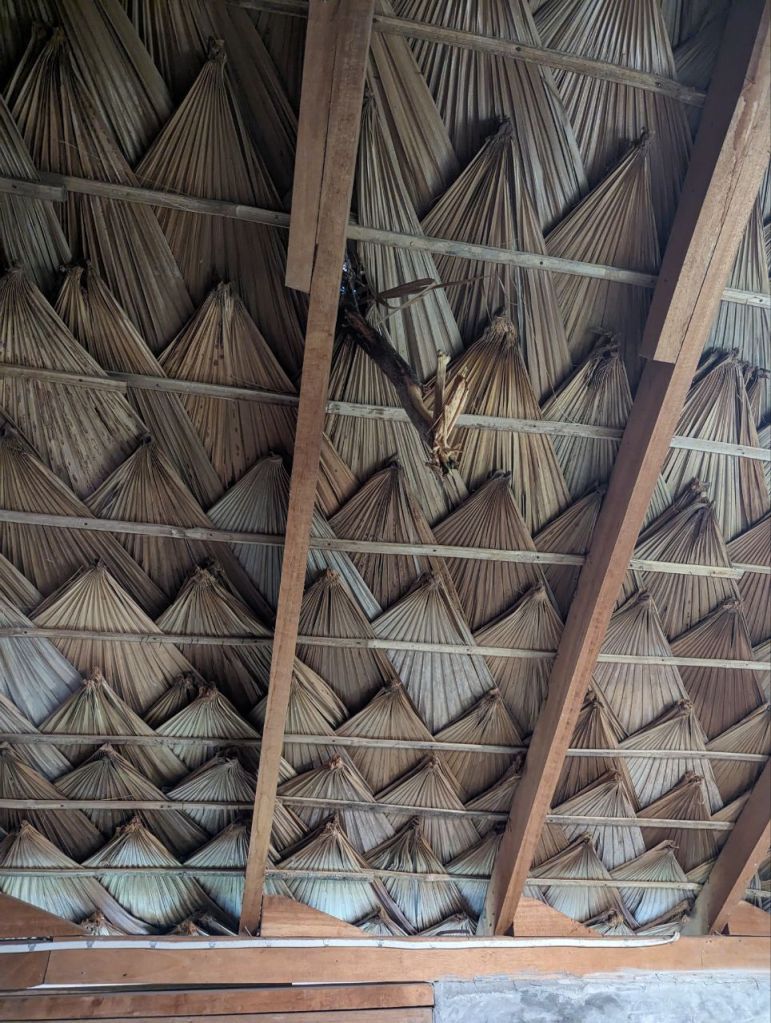 Naja oder zumindest Blätter. Morgens bemerken wir dann wo der Knall herkam. Den Nachbarsbaum hats erwischt bei dem Sturm und der ist ein bisschen durchs Palmendach in unser Badezimmer gebrochen.