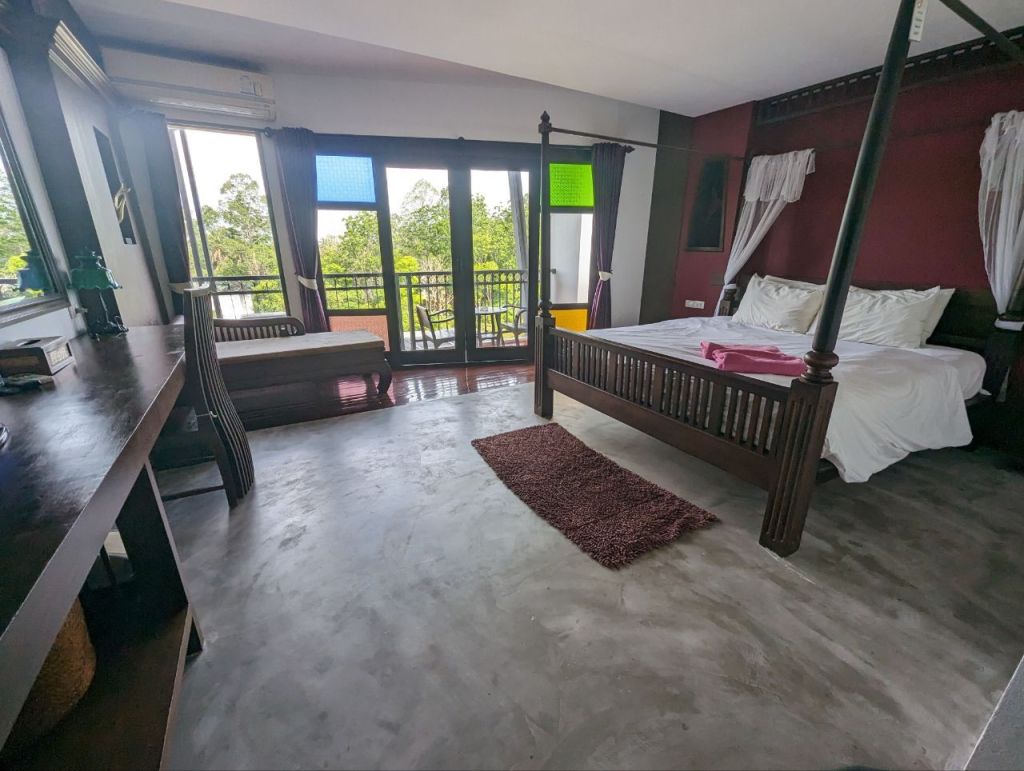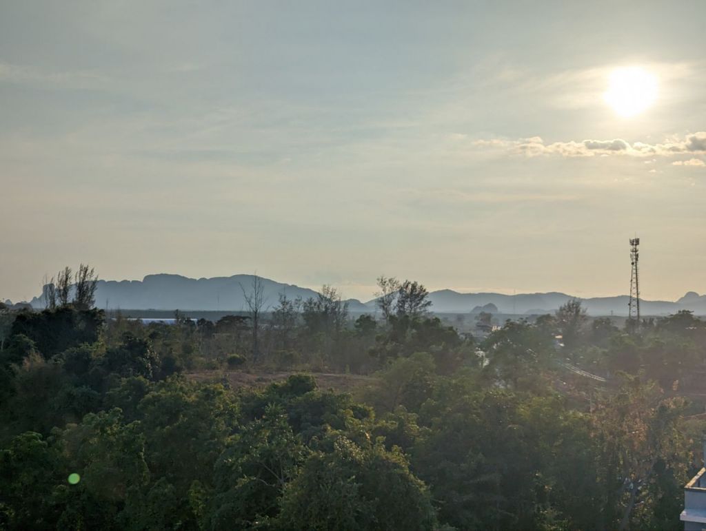 Dort wartet ein Minivan auf uns, der uns nach Krabi bringen soll. Zwischendurch dürfen wir noch mal umsteigen um wirklich nach Krabi zu kommen. Gegen Nachmittag kommen wir im Hotel an. Riesen Zimmer im 5. Stock mit tollem Blick und wirklich bequemen Bett.