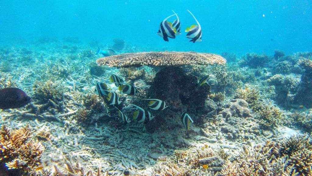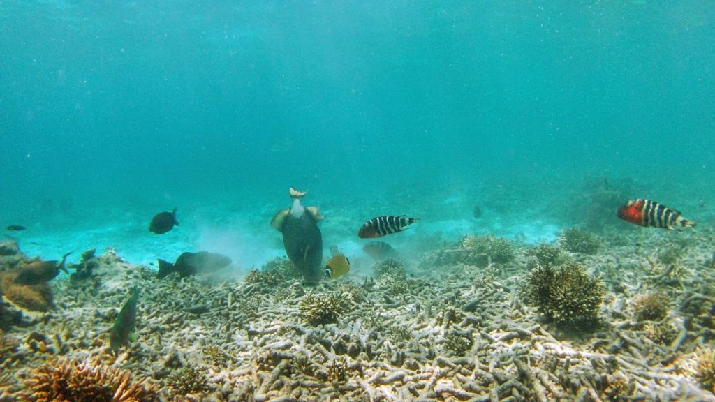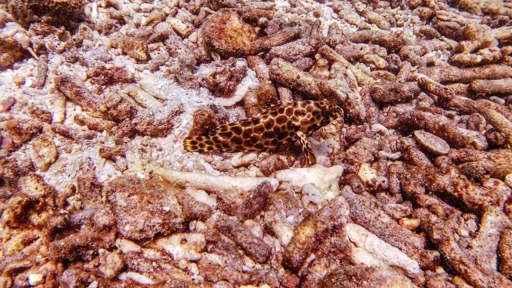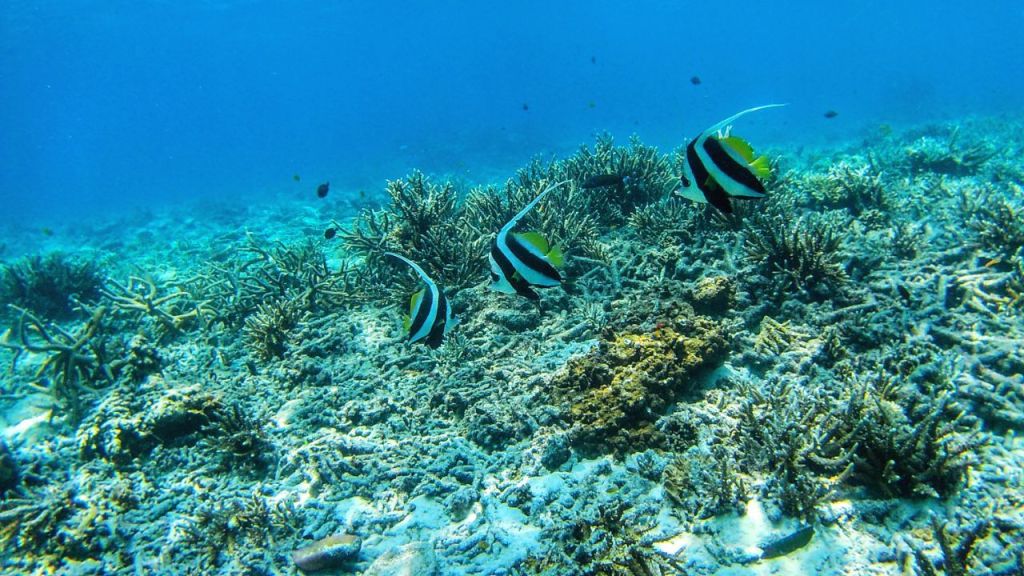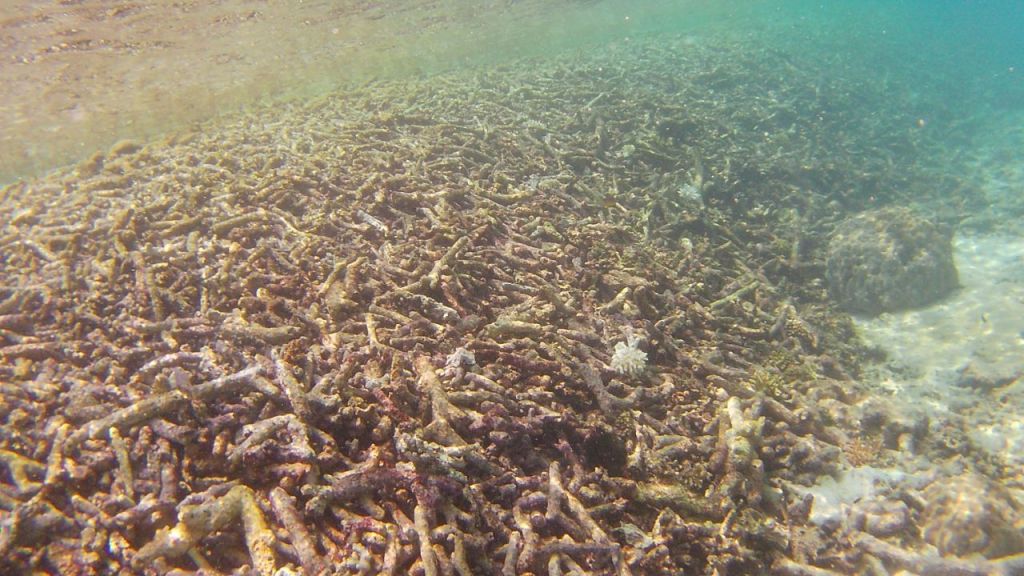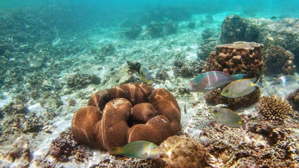 Dann geht’s ins Wasser. Das Riff ist ziemlich zertrampelt, aber weiter außen ist trotzdem viel zu sehen und das Wasser ist kristallklar. Sehr toll.