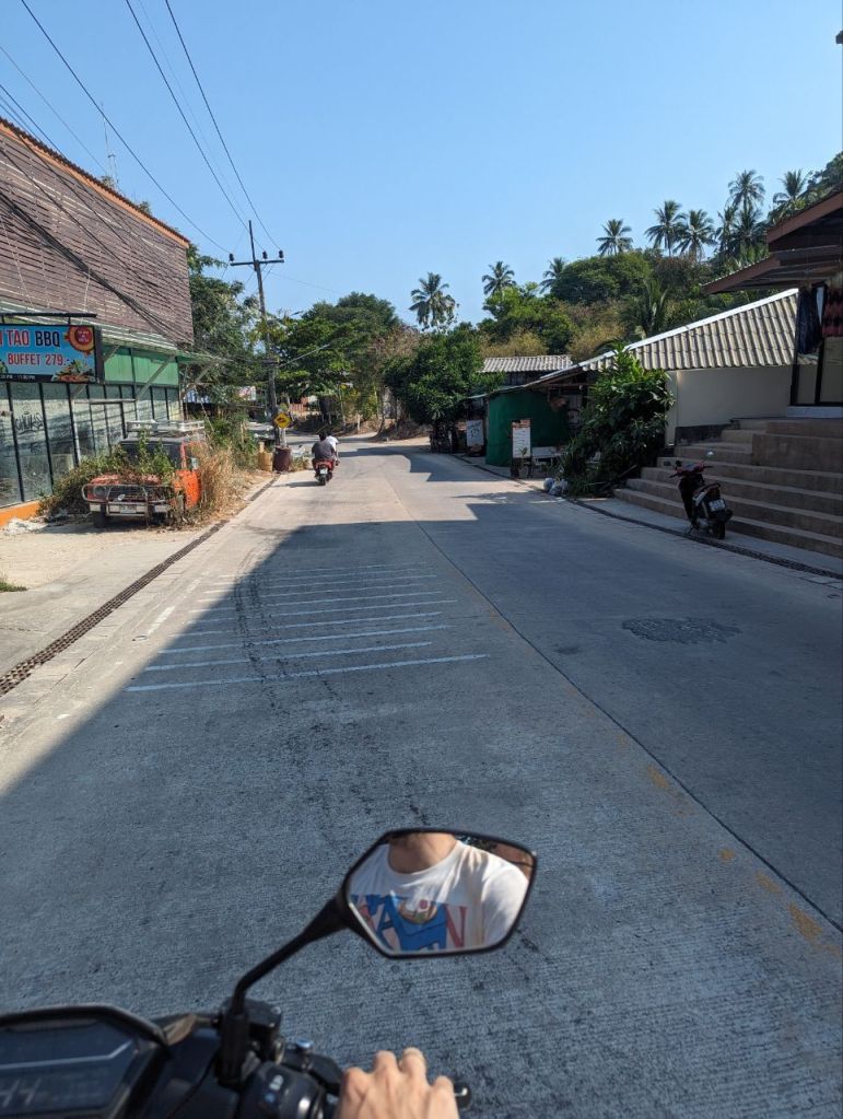 Fabi gönnt sich zum Aufwachen Dosenkaffee. Dann geht’s mit dem Roller zum Pier.