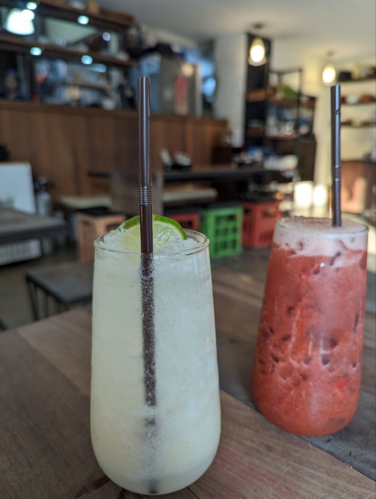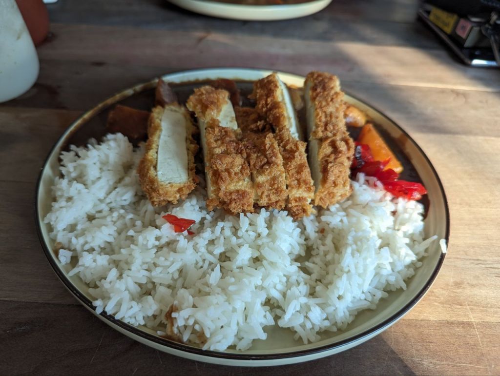 Abends geht’s nochmal zum Japaner. Tofu Tonkatsu mit Curry und Reis und Strawberry Mint und Lychee Sprudel. Sehr lecker.