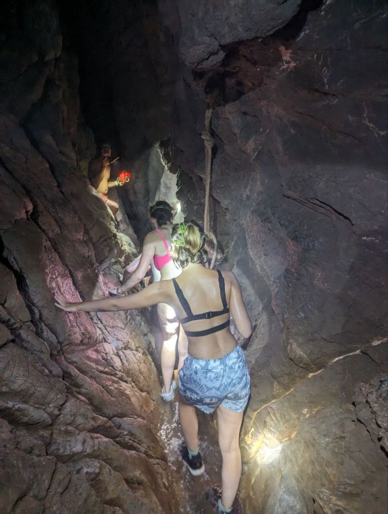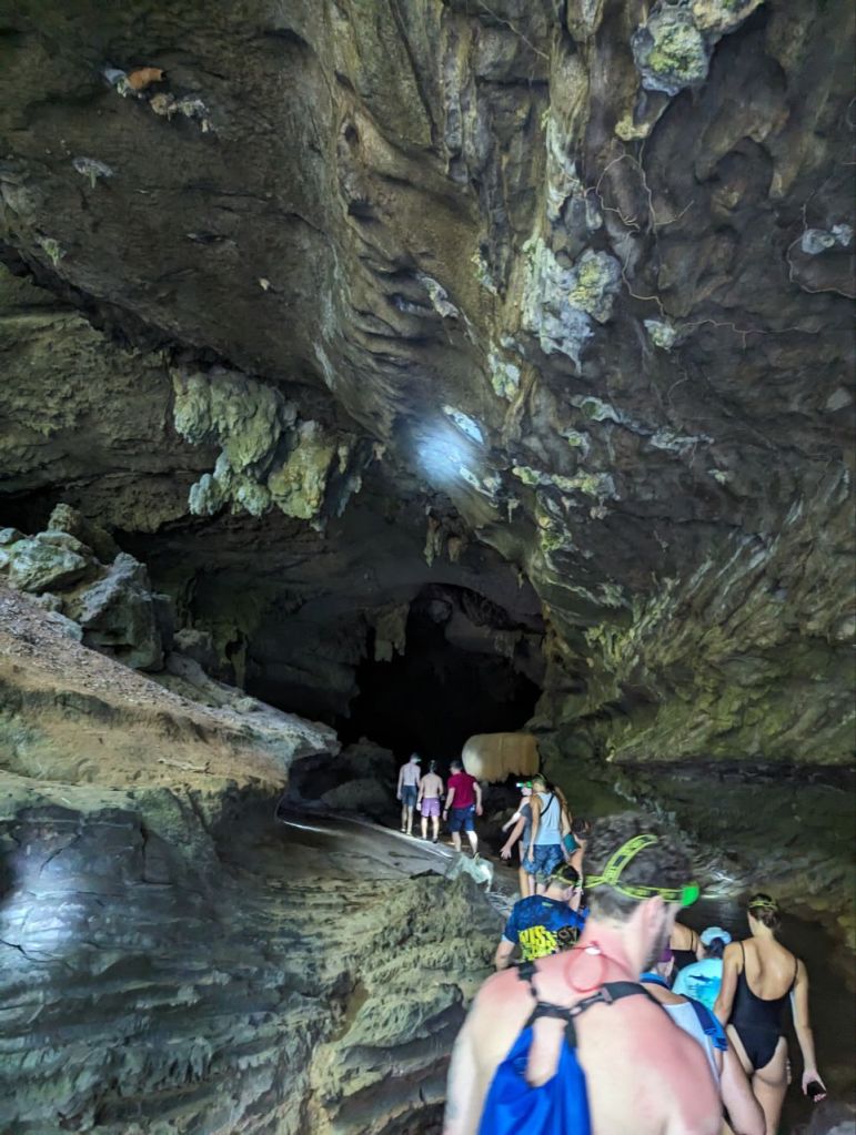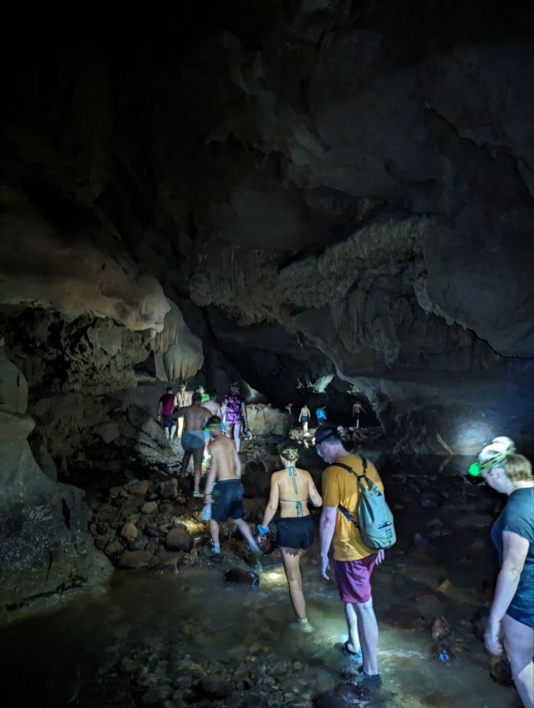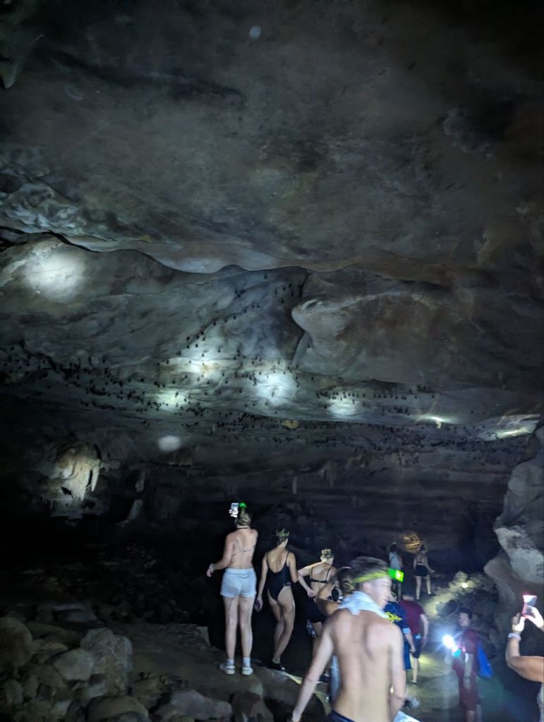 Im ersten Teil der Höhle leben riesige Spinnen, Fledermäuse und Grillen. Im zweiten Teil muss man immer wieder durchs Wasser, teilweise sogar ein Stück schwimmen. Sehr erfrischend und abenteuerlich.