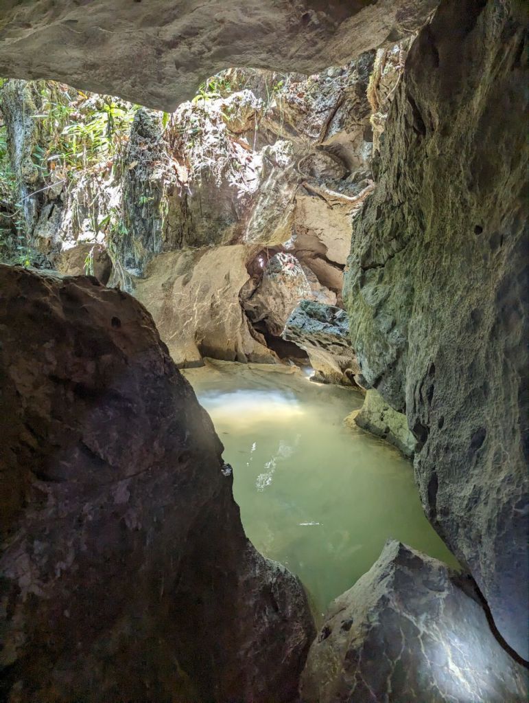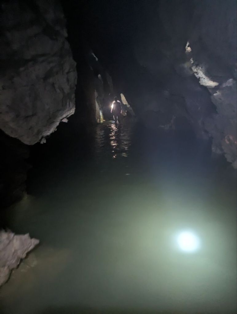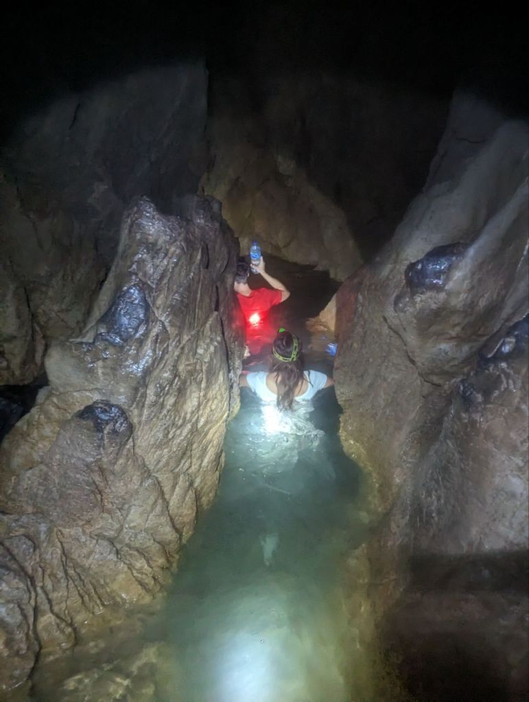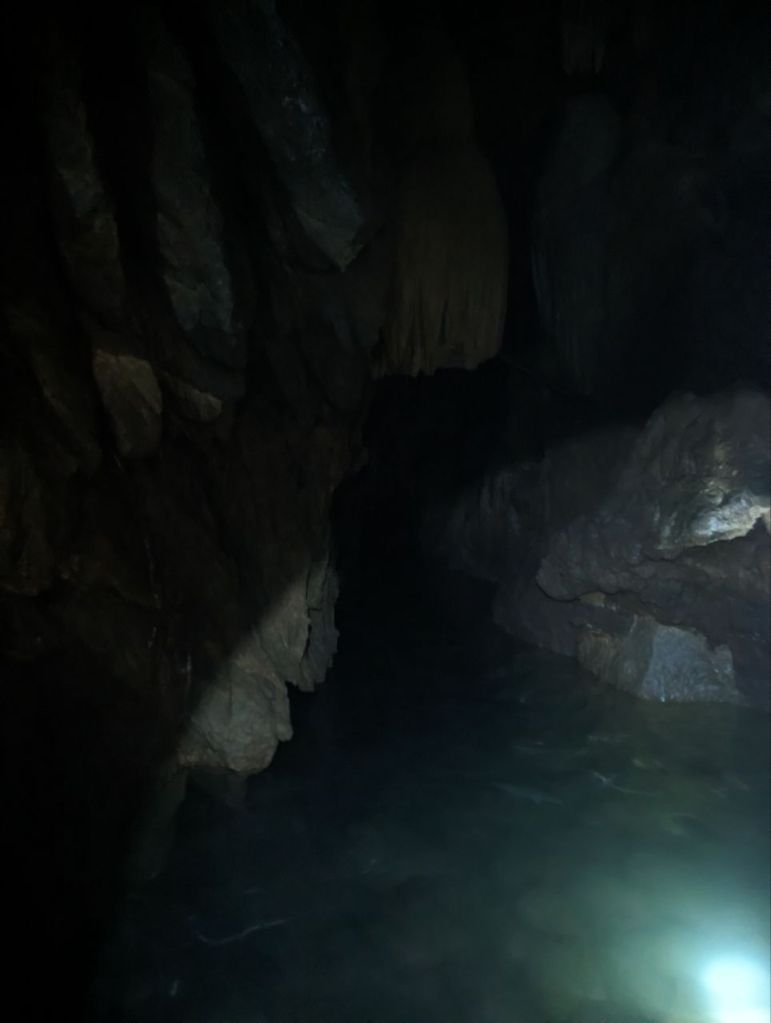 Im ersten Teil der Höhle leben riesige Spinnen, Fledermäuse und Grillen. Im zweiten Teil muss man immer wieder durchs Wasser, teilweise sogar ein Stück schwimmen. Sehr erfrischend und abenteuerlich.
