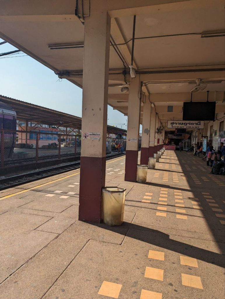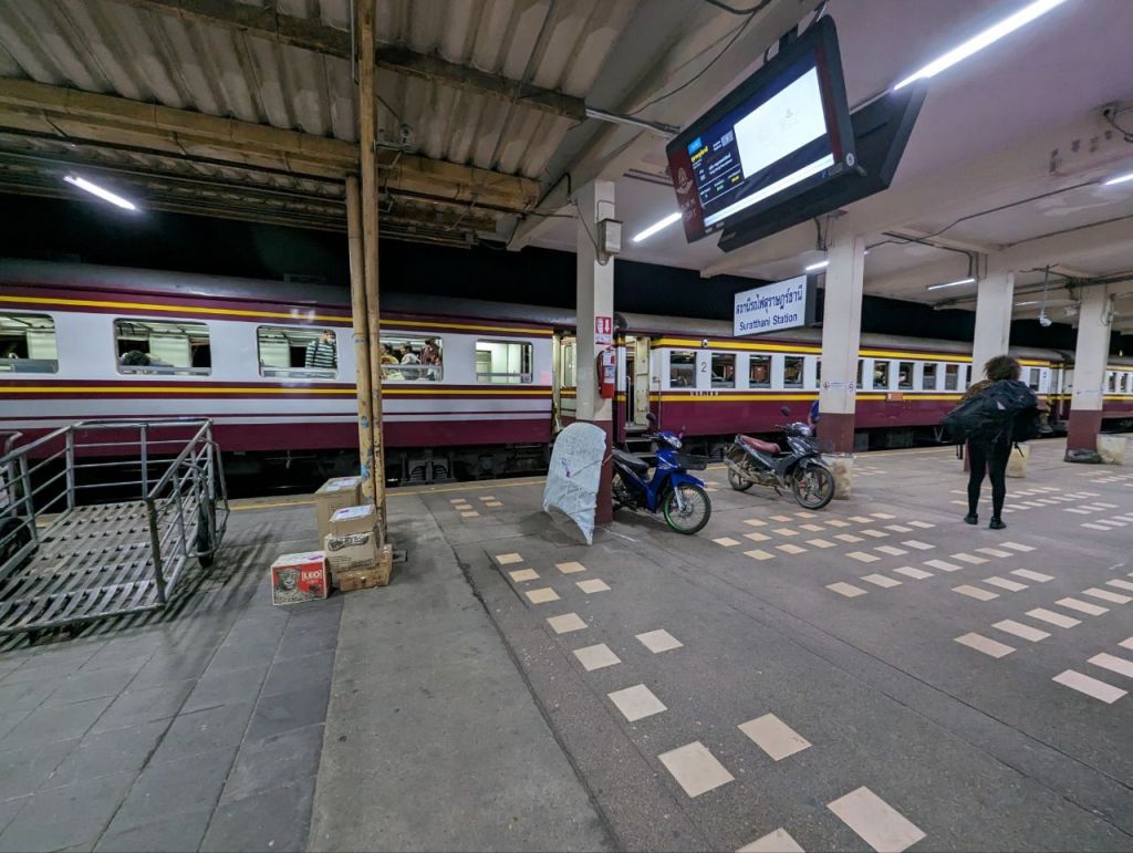 Vom Pier fährt der Shuttle zum Bahnhof in Surat Thani. Der Zug fährt um 9 Uhr. Wir kommen um 15 Uhr an, können aber die großen Rucksäcke abgeben.