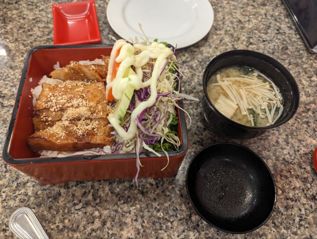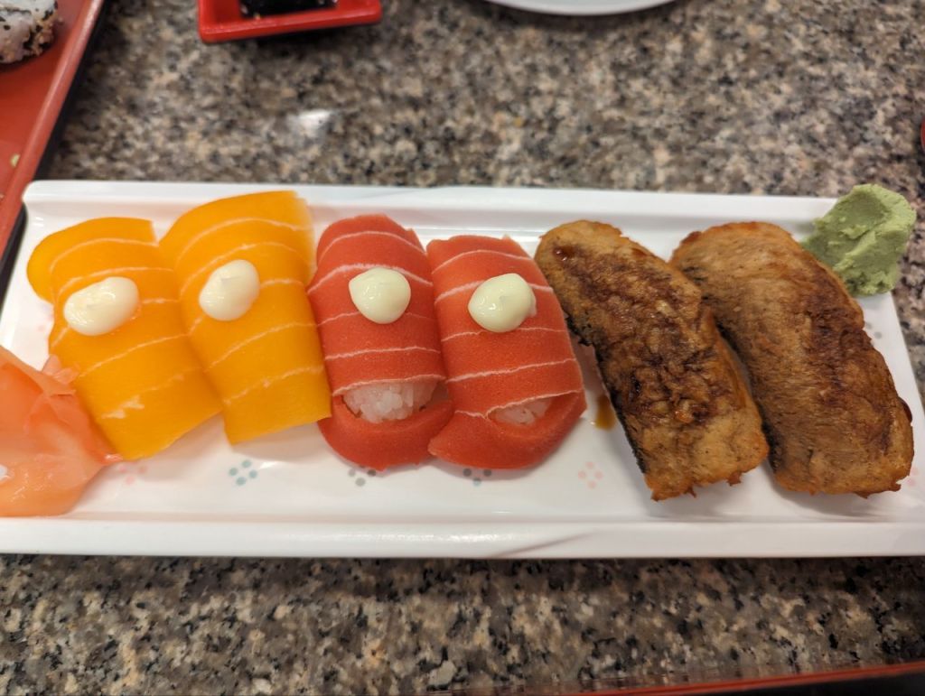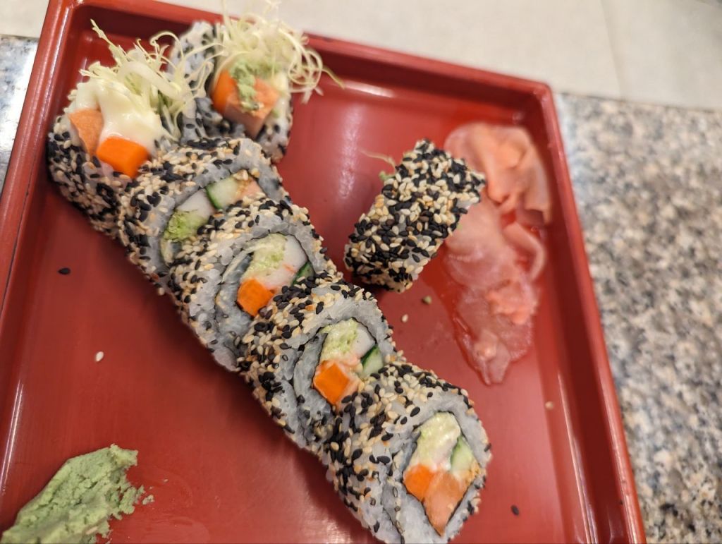 Die Zimmer sind ziemlich dreckig, aber egal. Wir holen bis abends ein bisschen Schlaf nach. Zum Abendessen gibt’s veganes Sushi und vegane Bento Boxen beim Japaner. Lecker.