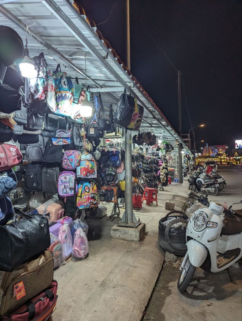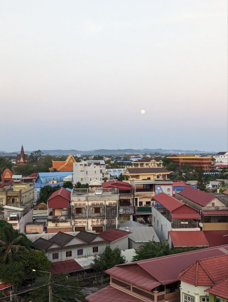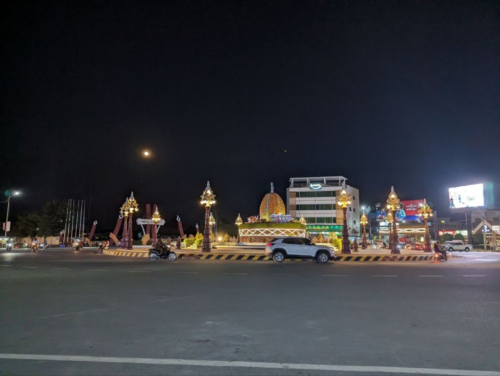 Die Fahrt ist reibungslos, dauert ca. 3 Stunden mit einer Pause. Wir stoppen in Kampot am Night Market, direkt ums Eck unseres Hotels.