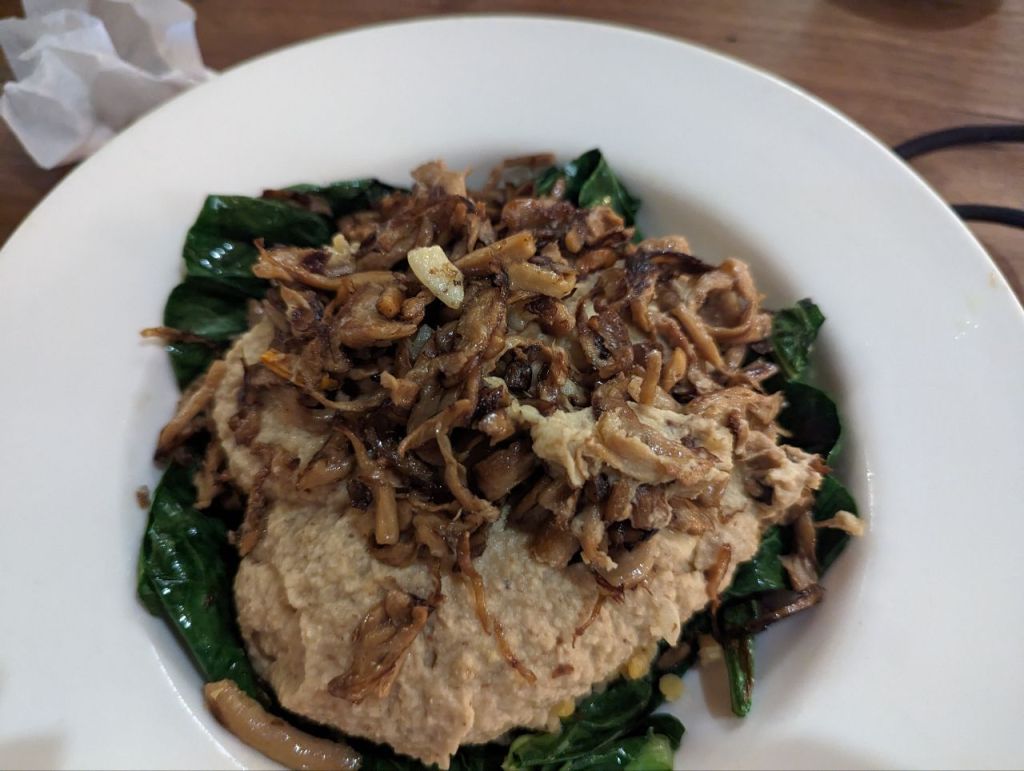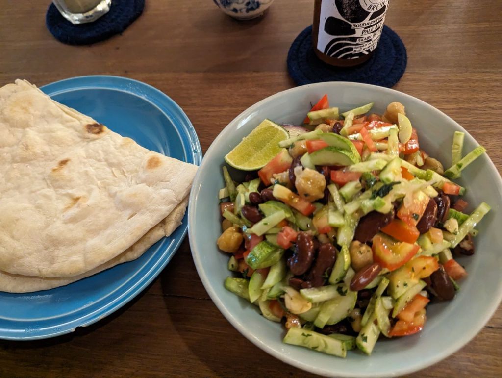 Abends gibt’s beim Veganer ein Linsengericht mit Pilzen und libanesischen Salat mit Pide. Lecker!
