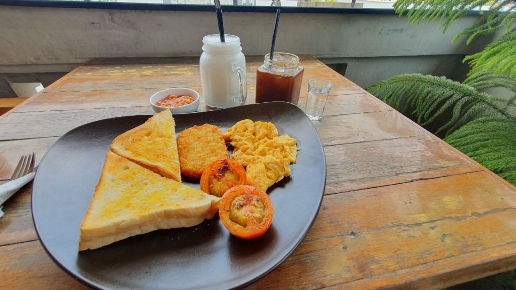 Wir teilen uns zum Frühstück nochmal ein Englisch Veggie Breakfast.