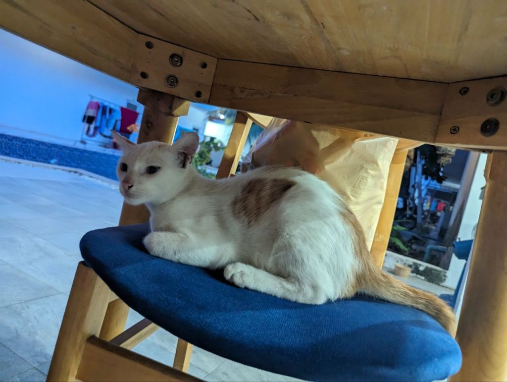 4 Tuktuks später haben wir alle Besorgungen erledigt und finden doch noch einen ungewöhnlich guten und echten Italiener fürs Abendessen. Margarita Pizza und hausgemachte Gnocchi. Und eine super süße Katze, die sich zu uns gesellt.