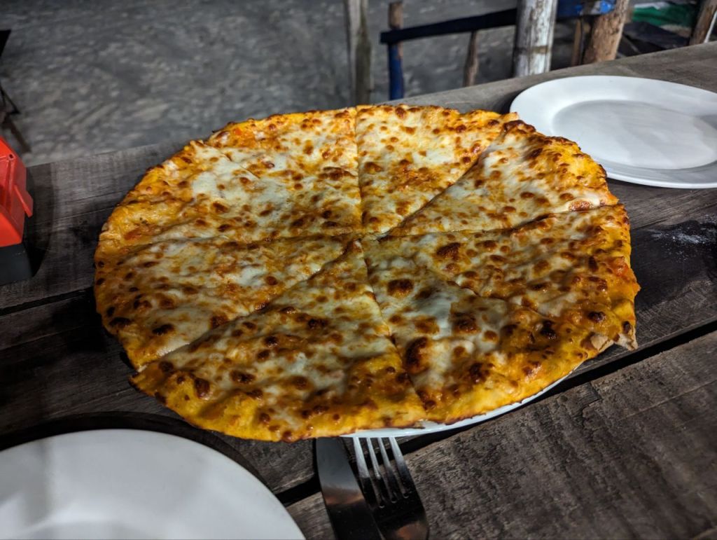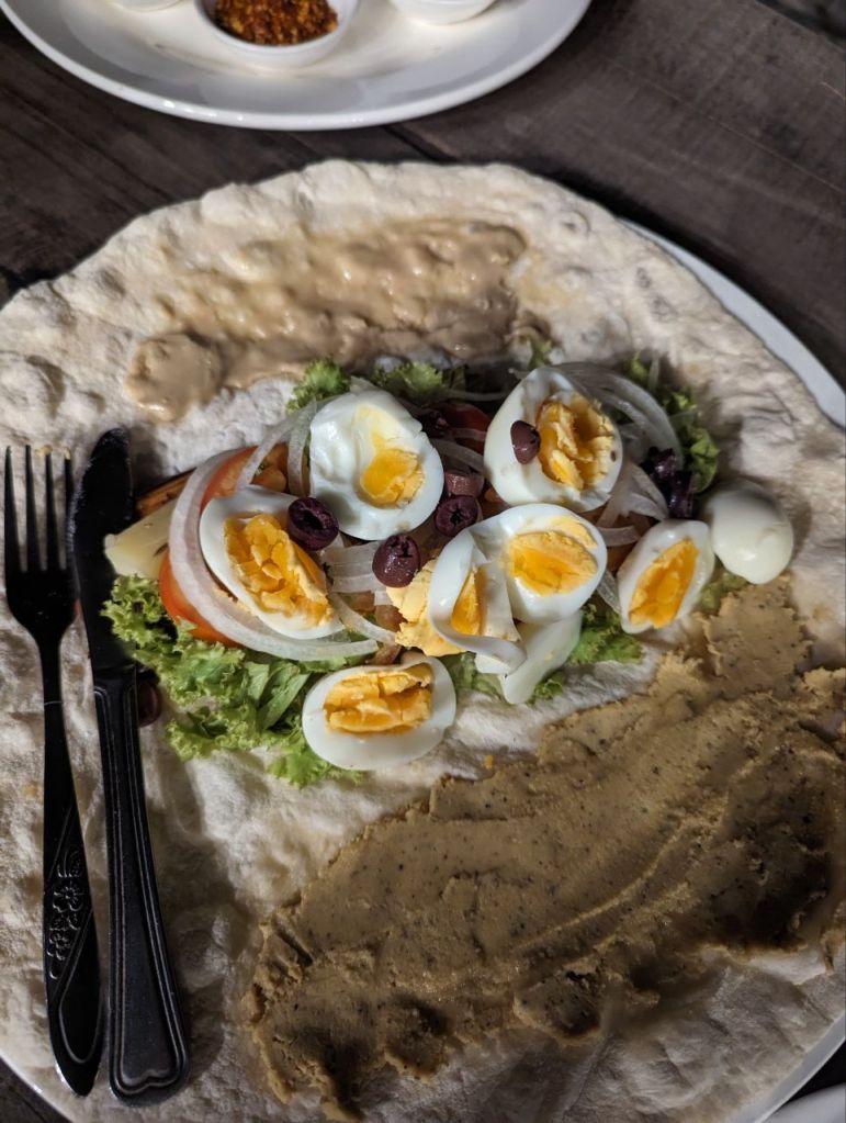 Abends gibt’s Sabih und Pizza beim Türken. Wieder sehr gut.